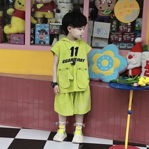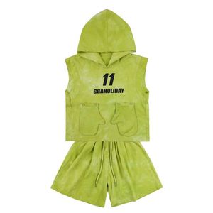 男童童装【色彩图鉴】夏季新款儿童字母印花蜡染无袖连帽夏装套装