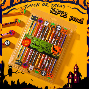 创意跨境卡通学生可爱12件套装万圣节铅笔橡皮组合盒装套装