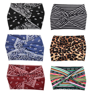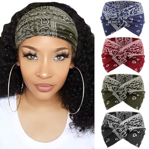 欧美16CM宽头带波西米亚头巾头带大号发带打结发饰印花运动发带