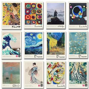 复古莫奈梵高文艺风帆布画世界名画客厅背景挂画走廊玄关装饰画