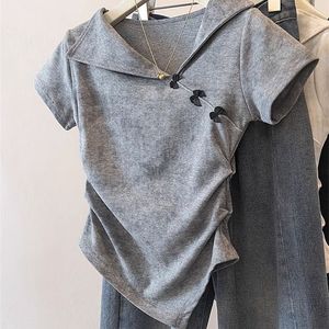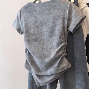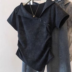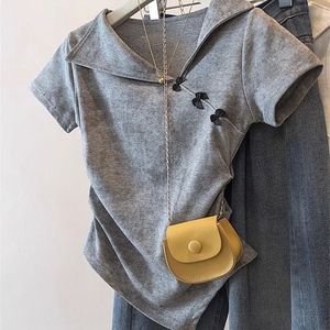 错过太可惜!设计感翻领扎染短袖T恤女夏季不规则蝴蝶结收腰上衣