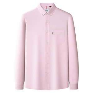 阿里虎春秋季男士全棉长袖衬衫男青年商务职业工装净版真口袋衬衣