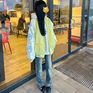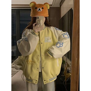 奶呼呼拼接刺绣棒球服外套春秋季美式复古慵懒风小个子夹克上衣