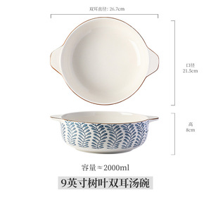 日式陶瓷双耳汤碗家用新款大汤盆酸菜鱼大盆碗特大号面碗大碗