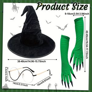 服装配件女巫万圣节Cosplay与长连帽斗篷女巫帽子绿爪手套