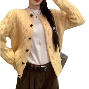 韩版黄色针织毛衣外套女春秋2025新款慵懒风外搭开衫短款小上衣