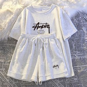 索罗娜新款2025夏大码女装两件套宽松休闲显瘦女T恤短裤套装