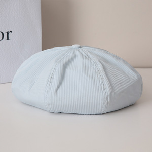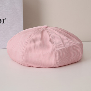 跨境韩国条纹贝雷帽可爱小清新南瓜帽马卡龙色贝雷帽多巴胺帽子