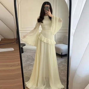 欧美跨境2025新款褶皱长裙女装修身o型领收腰晚礼服时尚连衣裙