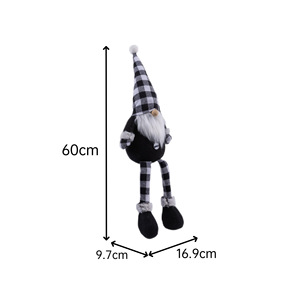 新款圣诞节装饰用品格子帽无脸鲁道夫长腿坐姿公仔橱窗摆件