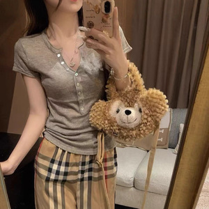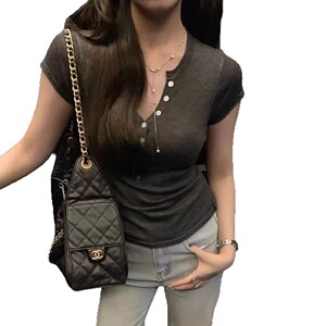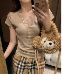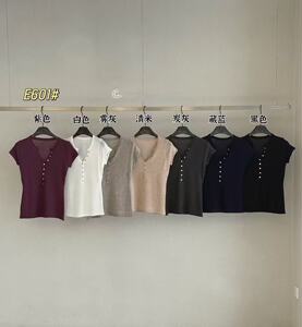 轻薄高级半开领短袖针织T恤女夏2025新款修身亲肤百搭温柔风上衣