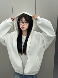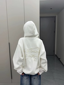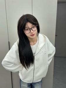 美式潮牌珍珠字母刺绣连帽卫衣女秋季设计感小众宽松复古开衫外套