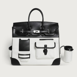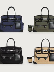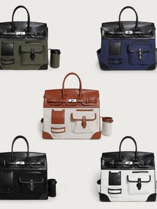 H家跨境 撞色帆布拼色手提包特大号铂金包休闲旅行包单肩斜挎女包