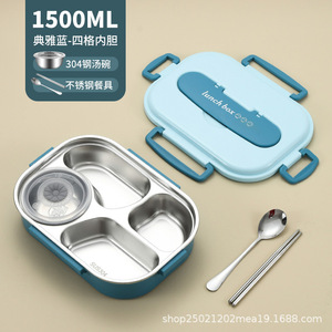 雅典蓝/四格内胆1500ml【配送筷勺餐具+304汤碗】