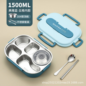 雅典蓝/五格内胆1500ml【配送筷勺餐具+304汤碗】