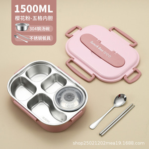 樱花粉/五格内胆1500ml【配送筷勺餐具+304汤碗】