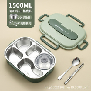 清新绿/五格内胆1500ml【配送筷勺餐具+304汤碗】