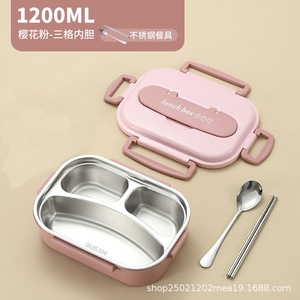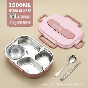 樱花粉/四格内胆1500ml【配送筷勺餐具+304汤碗】