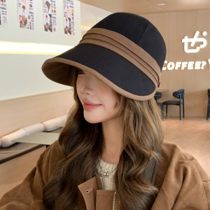 帽子女2025秋冬新款极简风拼色设计感显脸小韩国保暖户外百搭盆帽
