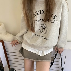 韩版字母印花加绒白灰色卫衣女学生秋冬慵懒风宽松圆领套头女上衣