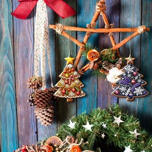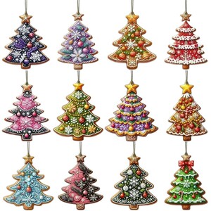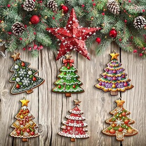 跨境新款36件圣诞节创意彩色圣诞树暖心家居木质装饰 派对挂件