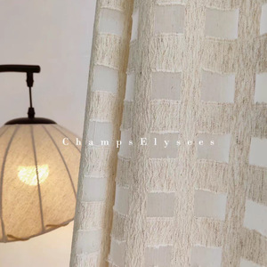 方格亚麻纱侘寂复古风客厅阳台现代镂空光影氛围感透光不透人纱帘
