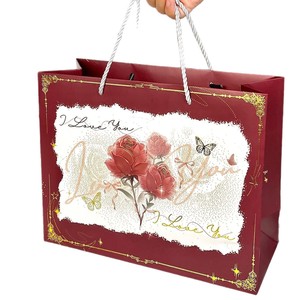 鎏金玫瑰手提礼品袋;大号【30*24*12cm】;白卡纸