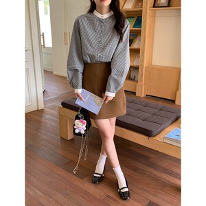 3th Morning 早秋新款 韩系减龄撞色立领格纹长袖衬衫ZY3207