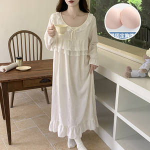 带胸垫睡裙女春秋季新款韩系甜美云朵棉长袖睡衣大码家居服可外穿