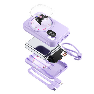 跨境新款卡通萌宠22.5W快充充电宝自带线数显便携移动电源礼品