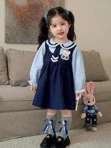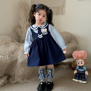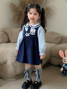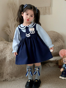 女童连衣裙秋装新款洋气女宝宝公主裙假两件春秋季儿童学院风裙子