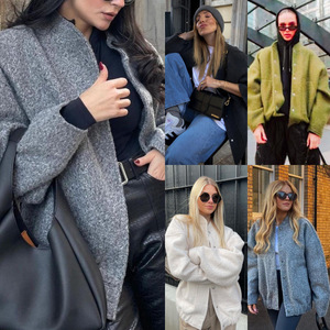 欧美跨境2025新款女装休闲色立领单排扣大口袋宽松舒适长袖MG616