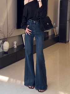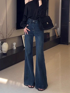 复古蓝高腰微喇牛仔裤女2025年秋季新款宽松显瘦百搭不贴腿喇叭裤