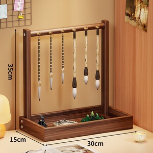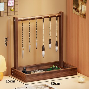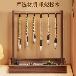 毛笔挂架多功能毛笔收纳架文房四宝摆件笔托中式实木悬挂式毛笔架