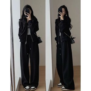 2025秋冬休闲卫衣运动套装女时尚港风显瘦减龄阔腿裤连帽两件套