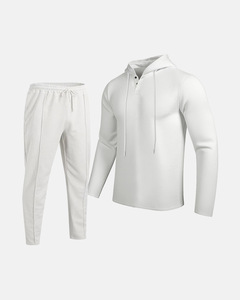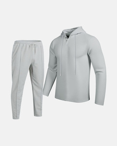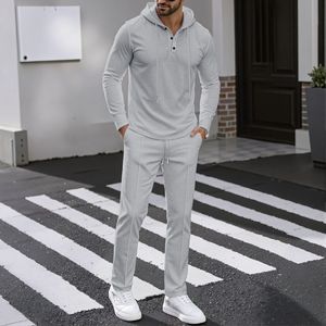 亚马逊2025欧美跨境男士休闲套装户外华夫格连帽纯色长袖长裤套装