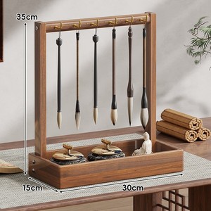 中式复古毛笔架大容量书桌整理架桌面文房四宝收纳桌上悬挂式笔搁