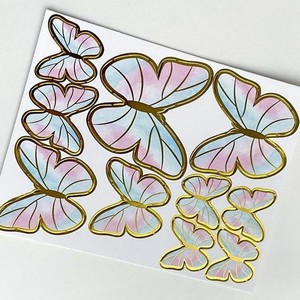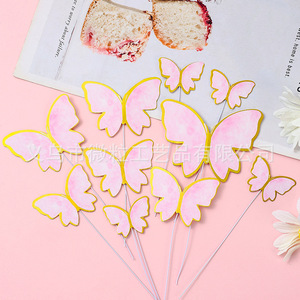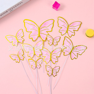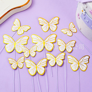生日蛋糕装饰烘焙插件漫彩色烫金蝴蝶浪插旗DIY网红甜品台装扮