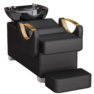 黑色纹路皮革 低脚踏 半躺式洗头床