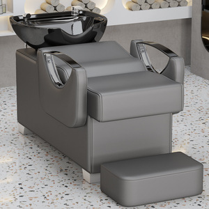 灰色纹路皮革 低脚踏 半躺式洗头床