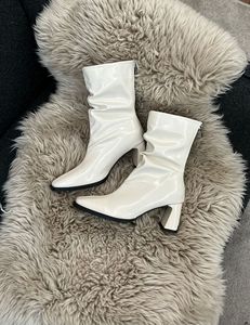 法式气质高跟瘦瘦短靴女鞋2025新款秋冬季褶皱方头短筒靴子女