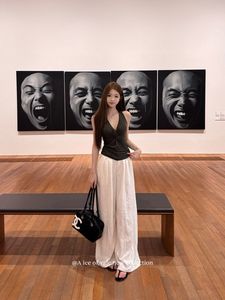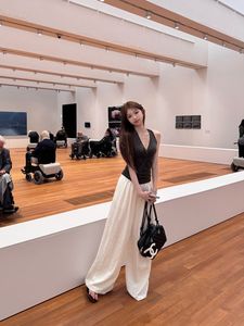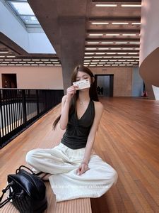 纯欲风辣妹套装女2025夏季新款韩系V领扭结挂脖背心阔腿裤两件套