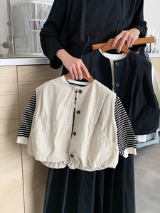 儿童背心韩版2025秋季新款简约纯色棉布马甲男童工装背心ins坎肩