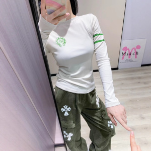 ch马蹄铁印花33数字长袖打底衫女25早秋7月新款圆领长袖修身T恤