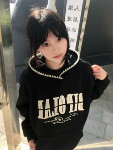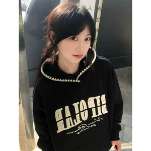 韩国学院风薄款oversize设计感小众帽衫外套女秋季潮牌连帽卫衣潮