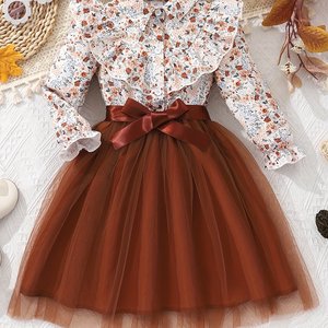 Girl's long-sleeved dress Gauze skirt Baby fashion dress