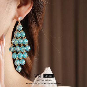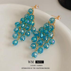 韓国の甘いシルバーニードルクリスタルダイヤモンドタッセルイヤリング、軽い高級感とハイエンドのイヤリング、小さくて新鮮で多用途なイヤリング