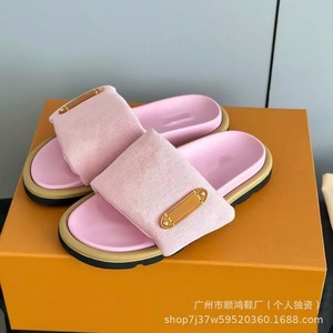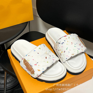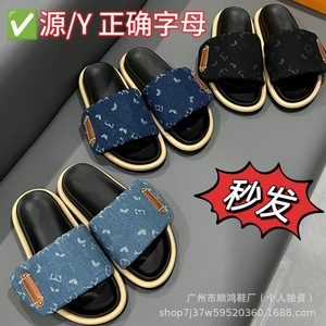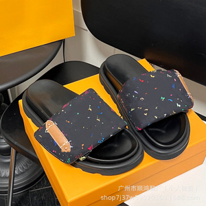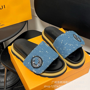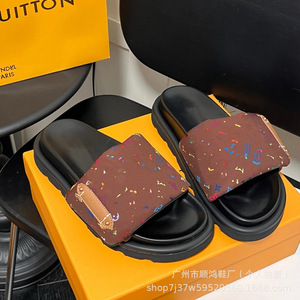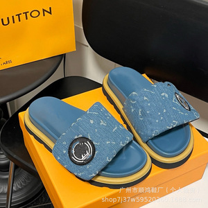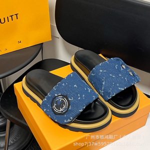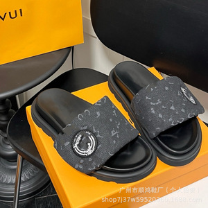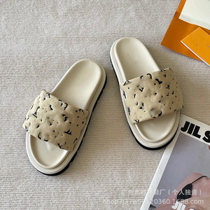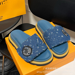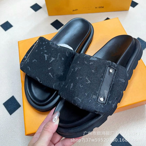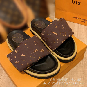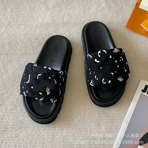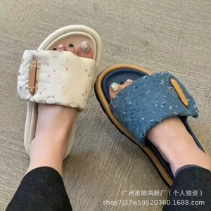 驴家魔术贴厚底拖鞋夏季新款百搭休闲老花情侣大码一字沙滩凉拖鞋