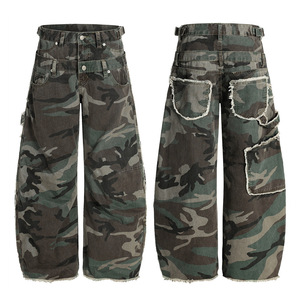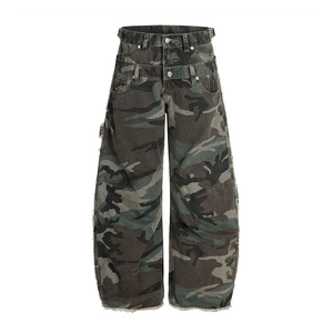 双腰头拼接迷彩工装裤男士可调节裤头设计感个性小众嘻哈潮流长裤