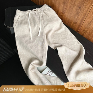 白色轻薄透气天丝亚麻休闲裤男夏日松弛感老钱风裤子宽松阔腿长裤